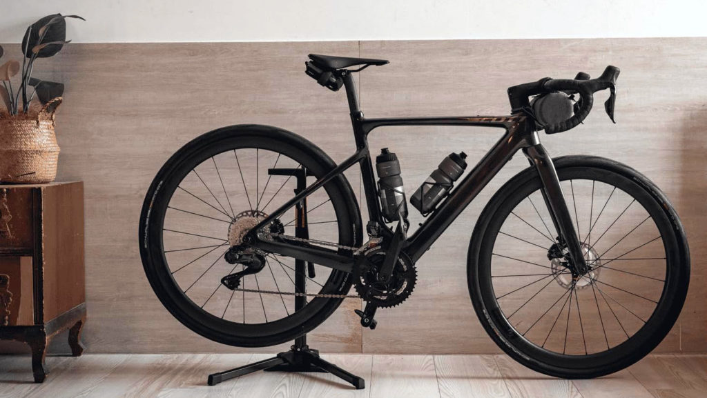 La roue avant, elle, reste bien sûr en contact avec le sol et il est nécessaire de se pencher pour accéder au vélo contrairement à ce que permet un véritable pied d’atelier. La solution 2-en-1 est imparfaite mais a le mérite d’être pratique et de dépanner, sans être trop volumineuse ou onéreuse.