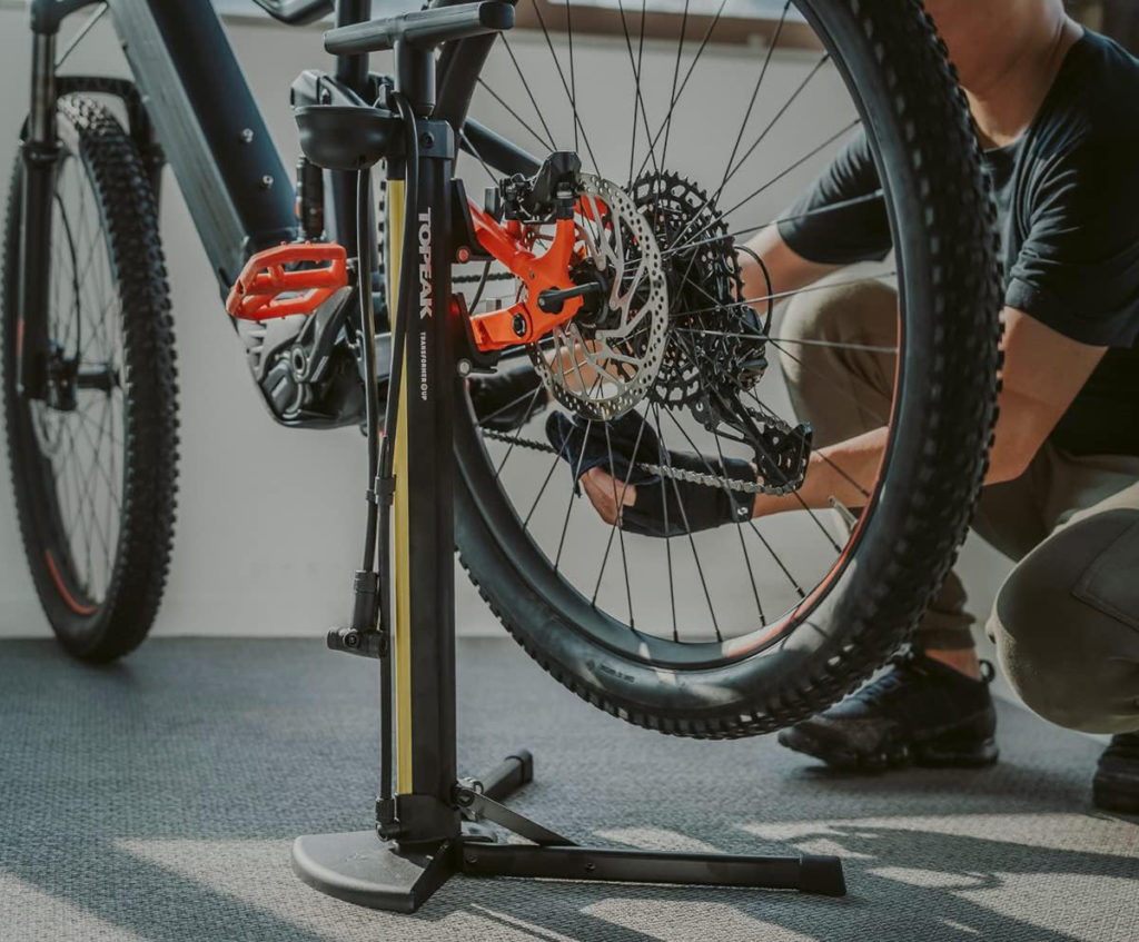Originales et pratiques, les pompes à pied Transformer de Topeak cumulent deux fonctions : gonfler les pneus et servir de pied d’atelier. Un outil malin pour entretenir, réparer ou ranger son vélo.