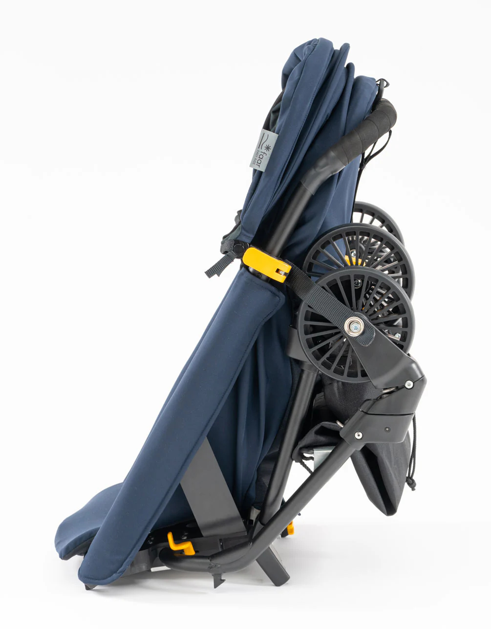 Le Faar Ride pèse 7,4 kg au total et mesure 63 x 40 x 44 cm une fois la poussette pliée. Elle est livrée avec une housse textile, un harnais 5 points, le coussin d’assise et son panier pouvant supporter 2 kg de chargement. Le kit « siège vélo » ajoute la platine de fixation EasyClick, des plaques de protection latérales, des repose-pieds et une sangle de fixation au cadre du vélo.