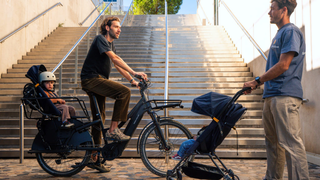 Des solutions de ce type existent bien sûr. Nous parlions récemment de l’initiative de Gaya avec son porte-poussette, ou encore de la sacoche Bakkie Cycles qui permet elle aussi d’embarquer une poussette avec soi. Avec le Faar Ride, le concept est poussé un cran plus loin.