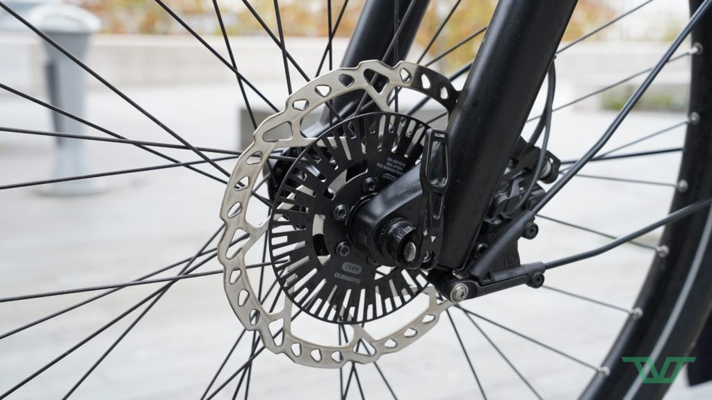 Le mouvement reste lent et parfaitement maîtrisable. Le système intègre également une fonction anti-recul, évitant au vélo de repartir en arrière — un vrai plus pour les vélos cargo chargés de courses ou d’enfants.