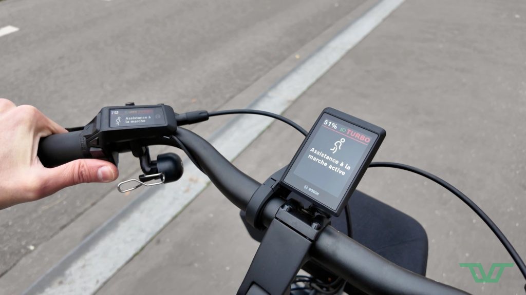 Souvent méconnue, l’assistance à la marche fait pourtant partie des fonctions les plus utiles. Dans une rampe de parking, un passage piéton encombré ou lors de la manipulation d’un vélo chargé, il suffit de maintenir la touche « – » pour que le moteur aide à pousser le vélo.