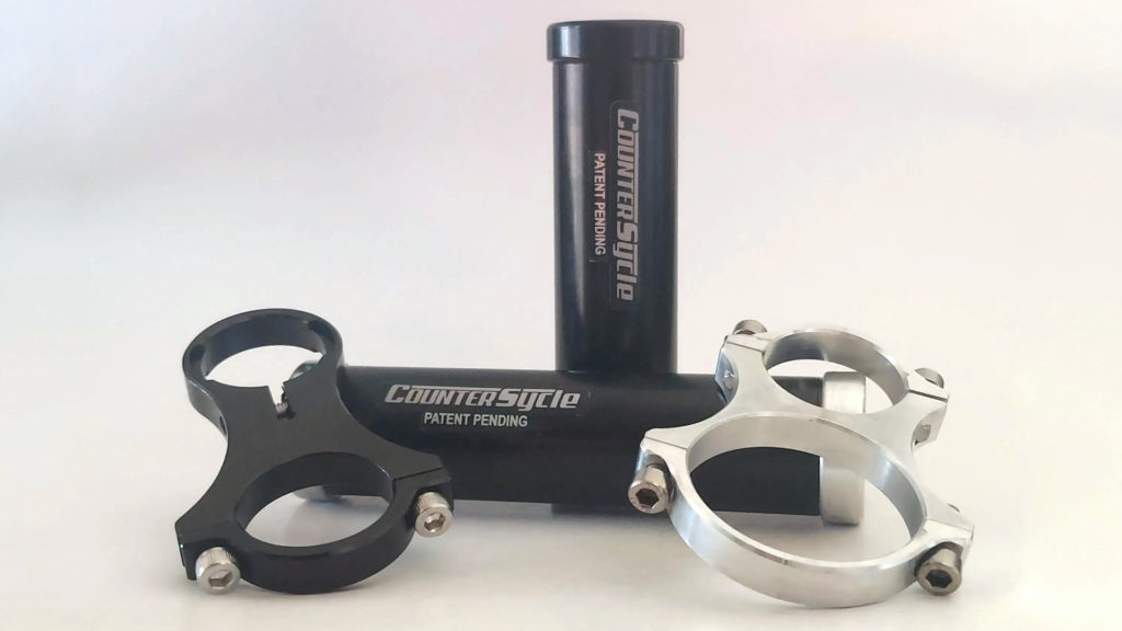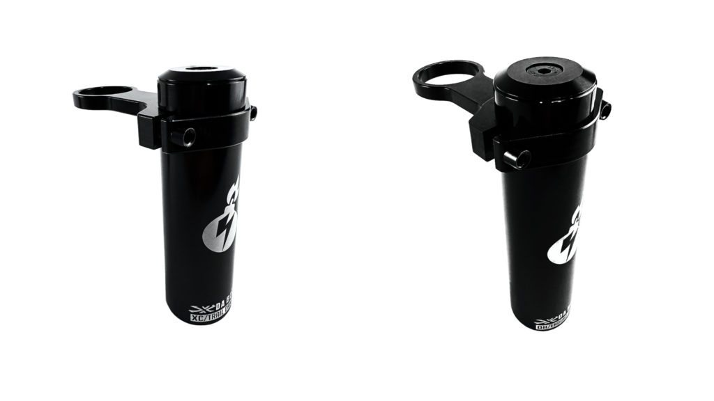Chez Da Bomb et CounterSycle, il prend la forme d’un cylindre que l’on va stratégiquement venir monter à l’avant du vélo, en lien avec la colonne de direction. Dans les deux cas, plusieurs versions sont présentées, plus ou moins longues et lourdes en fonction de la discipline visée. Le besoin de filtration est évidemment plus fort en DH qu’en trail, et ces marques travaillent donc sur des composants adaptés à la DH, à l’Enduro, au Trail, etc.
