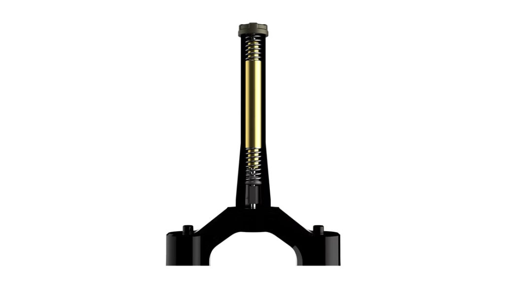 Chez Rimpact, l’approche est encore différente avec un mass damper intégré directement dans le pivot de la fourche. Cela ajoute environ 400 g à la fourche pour un prix estimé à 250 $ environ. Cela permet de bénéficier d’une meilleure intégration au vélo, mais également d’une meilleure efficacité dans la filtration des microvibrations selon le fabricant.