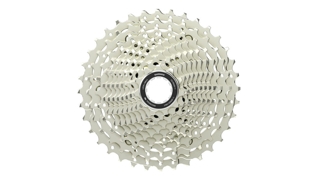 En parallèle, Shimano étend sa plateforme CUES avec une nouvelle offre route 2×11 vitesses articulée autour du dérailleur arrière RD-U6040 et de la cassette CS-RS400-11 en 11–36 dents. Cette dernière propose une plage de développement de 327 %, adaptée aussi bien aux sorties rapides qu’aux parcours vallonnés ou montagneux. Elle se distingue également par un gain de poids d’environ 200 grammes par rapport aux cassettes Linkglide équivalentes, contribuant à alléger significativement la transmission.