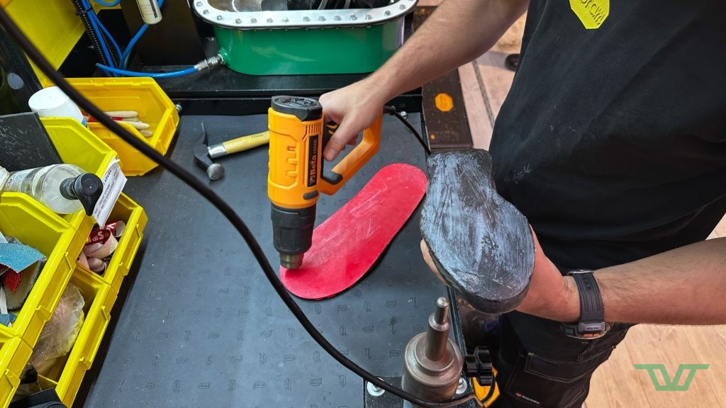 Par la suite, le cordonnier vient chauffer la chaussure et la semelle pour fusionner les deux. La tâche semble simple, mais comme pour tous les métiers de l’artisanat, elle demande une grande précision et il n’y a pas le droit à l’erreur.