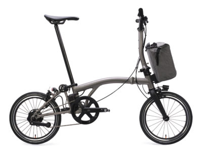 Le Brompton C Line électrique à système e-Motiq embarque un moteur arrière 24 Nm et une batterie amovible toujours installée à l’avant de 345 Wh, avec une commande moteur au guidon. Il conserve son cadre acier, ses freins patins et ses équipements, dont les roulettes SuperRoll+ pour faciliter le transport du vélo lorsqu’il est plié. Il offre 4 vitesses, pour un poids – batterie incluse – de 17,9 kg.