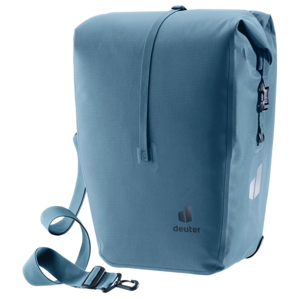 Sacoche de porte-bagages au format drybag, la Visby se ferme par enroulement sur le dessus. Le volume peut être augmenté de 5 litres en déroulant le tissu. L’étanchéité est assurée par un matériau TPU et des coutures soudées par radiofréquence ; la norme IPX4 garantit une protection contre les fortes pluies.