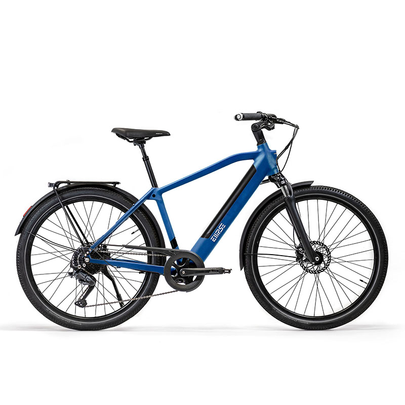 Le Ellipse E2 est un vélo électrique pour la ville et/ou les chemins, motorisé par un moteur moyeu arrière Mivice M080 développant 45 Nm de couple, couplé à une batterie amovible d’une capacité de 504 Wh. Il est en partie configurable à la commande : 15 coloris au choix, transmission (Shimano Cues 9 vitesses ou courroie monovitesse), fourche (rigide ou suspendue), équipements (porte-bagage arrière et avant, béquille…) et connectivité (avec puce GPS). Le vélo est livré avec un cintre courbé garantissant une position confort ou un cintre plat pour une position plus sportive, une potence ajustable, des freins à disque hydrauliques Shimano et des pneus Continental Double Fighter III.