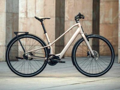 Le Ellipse E2 est un vélo électrique pour la ville et/ou les chemins, motorisé par un moteur moyeu arrière Mivice M080 développant 45 Nm de couple, couplé à une batterie amovible d’une capacité de 504 Wh. Il est en partie configurable à la commande : 15 coloris au choix, transmission (Shimano Cues 9 vitesses ou courroie monovitesse), fourche (rigide ou suspendue), équipements (porte-bagage arrière et avant, béquille…) et connectivité (avec puce GPS). Le vélo est livré avec un cintre courbé garantissant une position confort ou un cintre plat pour une position plus sportive, une potence ajustable, des freins à disque hydrauliques Shimano et des pneus Continental Double Fighter III.
