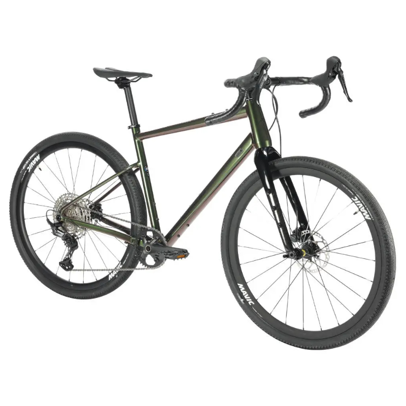 Le Nakamura Allroad 450 est un vélo de gravel signé Intersport, reprenant la base du best-seller Allroad 250 à cadre alu, mais avec un montage un peu plus qualitatif basé sur une transmission monoplateau 12 vitesses Shimano GRX, des roues Mavis Ksyrium 30 et des pneus Schwalbe G-One Comp.