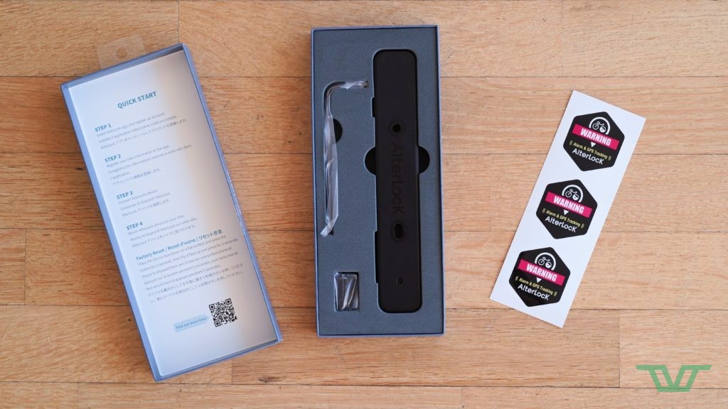 Le tracker Alterlock Gen 3 mesure 167 × 28 × 9 mm pour un poids d’environ 53 grammes. Résistant à l’eau et à la poussière (indice IP66), il est alimenté par une batterie Lithium-Polymère qui offre une autonomie de 3 mois maximum rechargeable via un port USB-C. Il communique avec le smartphone en Bluetooth et avec le réseau cellulaire via les protocoles LTE-M (4G dédiée aux objets) et NB-OIT (Narrowband Internet of things – un protocole de communication radio dédié aux réseaux étendus à faible consommation pour les objets). Il détermine sa localisation à l’aide de la position satellite GPS et Galileo (le système européen), les réseaux Wi-Fi connus et les antennes 4G. Enfin, l’alarme produit un son de 95 dB(A) qui comme nous allons le voir n’est pas vraiment dissuasif en milieu urbain.