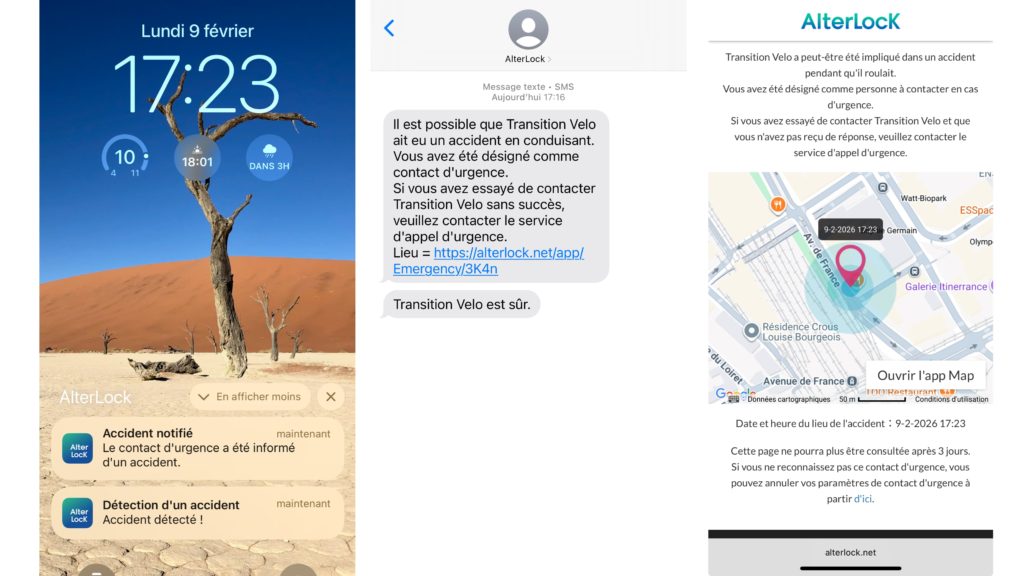 L’Alterlock Gen 3 est un tracker GPS avec alarme intégrée efficace pour compléter un antivol classique. Facile à installer, réactif dans l’envoi d’alertes et pertinent avec sa détection de collision par SMS, il offre une vraie surveillance connectée du vélo. Il souffre toutefois d’une alarme trop discrète en ville, d’une autonomie limitée et d’une ergonomie perfectible (réarmement, recharge), notamment l’absence de localisation dans les derniers mètres, qui pourra être corrigée avec l’installation d’une balise Bluetooth (AirTag, SmartTag, Chipolo).