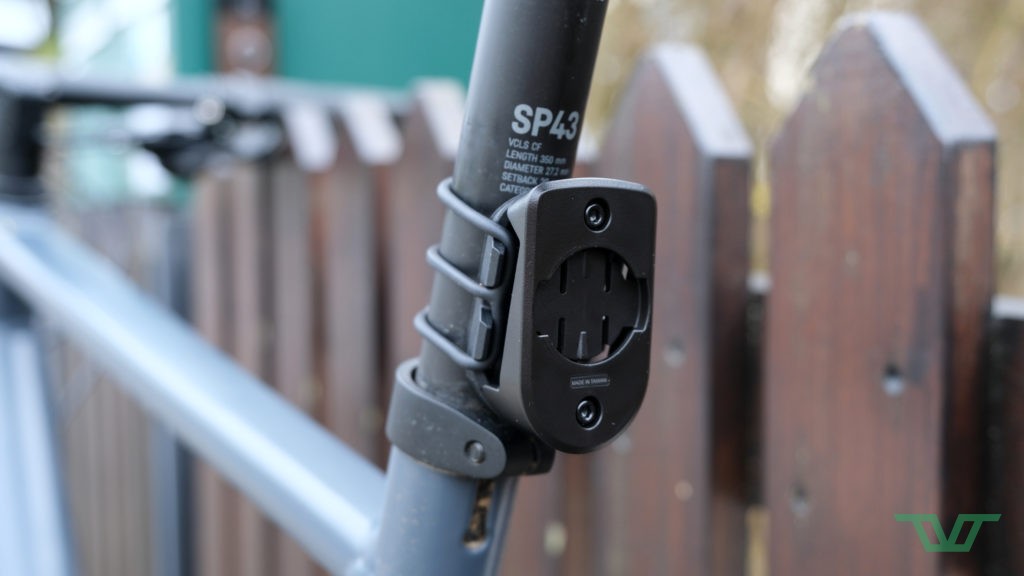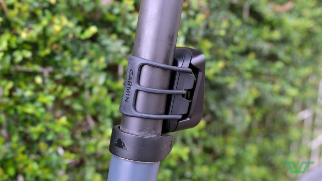 L’installation du radar sur sa tige de selle est on ne peut plus simple et Garmin livre évidemment tout le nécessaire dans la boîte du produit, avec différents adaptateurs pour accepter le maximum de formats de tiges de selle différents. Le maintien du support s’effectue simplement à l’aide de solides élastiques façon joints toriques, et il n’y a plus – ensuite – qu’à venir fixer le radar dessus en réalisant un quart de tour, comme on le fait avec son GPS.