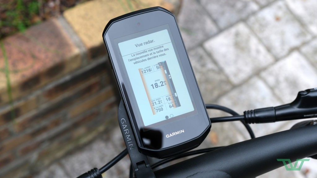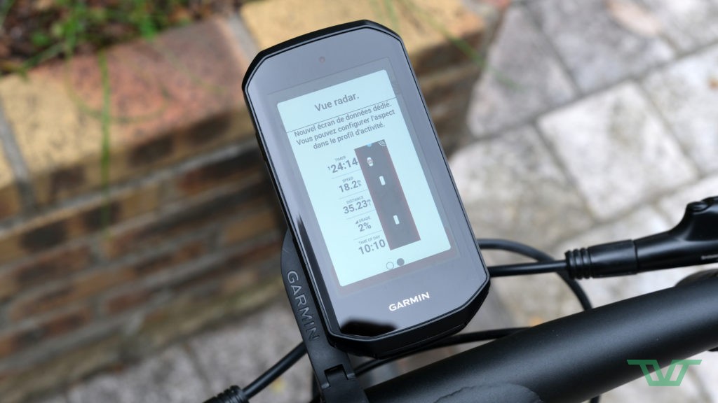 Sur son compteur GPS (Garmin nous a pour rappel prêté un Edge 1050 pour cet essai, compteur que nous avions déjà eu l’occasion de tester), on va pouvoir sélectionner parmi trois types d’affichage pour visualiser les détections de véhicules.