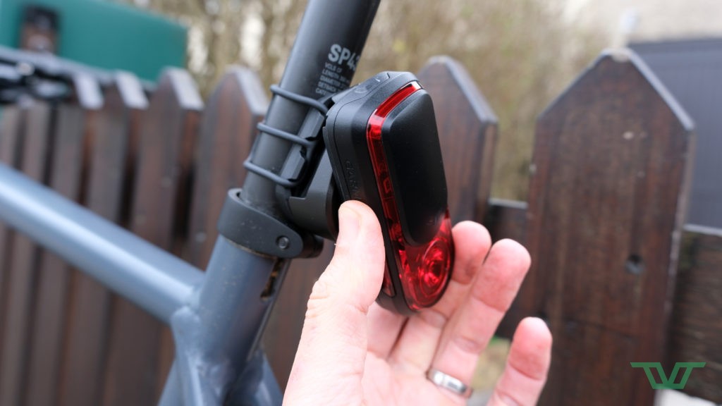 Le RearVue 820 est également un peu plus lourd avec ses 90 g. Là encore, rien de véritablement dérangeant. La bonne nouvelle, c’est qu’il intègre des modes d’éclairages un peu plus puissants. De 20 lumens en mode continu on passe à 25 lumens, et toujours 8 lumens en mode peloton. Les deux modes clignotants atteignent 40 et 100 lumens, et même s’ils sont toujours très utilisés par les cyclistes, on se doit de rappeler qu’ils sont illégaux au yeux de la loi.