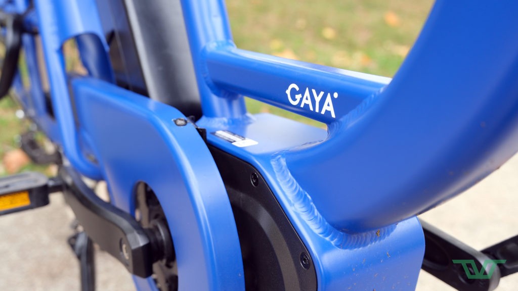 On apprécie de retrouver un cadre au design moderne et aux tubes plus solides. La section plus grosse et plus angulaire de ces tubes donne indubitablement un look bien plus actuel au vélo, comparé au premier vélo Gaya. L’absence de bras oscillant pour le montage de la plateforme arrière permet également à Gaya de revenir à une structure arrière toute intégrée au niveau des bases et des haubans, plus traditionnelle.
