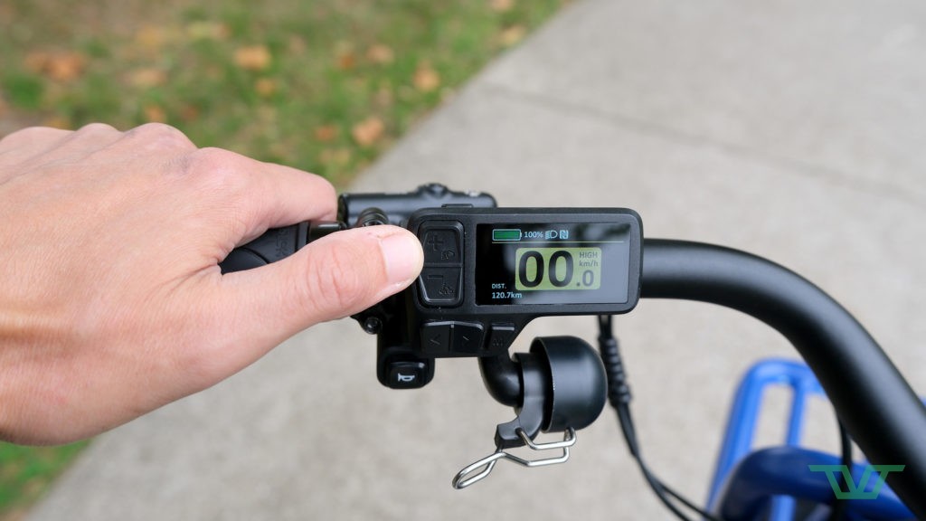 Enfin, à la sonnette des plus classiques, au tintement parfaitement identifiable, s’ajoute un klaxon. C’est une bonne idée même si l’on avait une préférence pour la sonorité plus scooter de la toute première version. Ici le son a un peu changé, mais la puissance est de mise pour attirer l’attention dans la circulation. A l’usage, on privilégie la sonnette sur les pistes cyclables et pour prévenir les piétons, mais le klaxon pour les interactions d’urgence avec les autres véhicules motorisés.