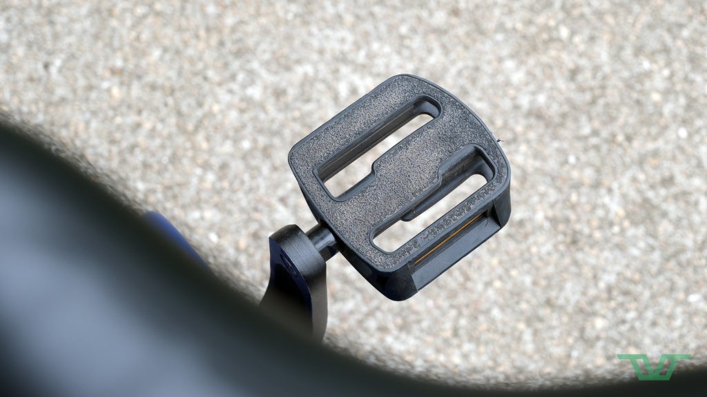 Les pédales pliantes à petits picots laissent place à des pédales avec un grip antidérapant un peu plus larges. Le pied accroche bien, même sous la pluie, et on peut utiliser sans soucis n’importe quel type de chaussure.