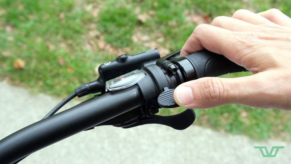 On l’a dit, le vélo présente toujours une petite gâchette d’accélération que l’on peut solliciter pour aider le démarrage (jusqu’à 6 km/h) et les relances (un coup de boost lorsqu’on pédale en même temps). Une gâchette qui est tout sauf gadget et dont on apprend très vite à se servir dans tout un tas de situation. Si bien que pour pas mal de cyclistes, elle réduira sans doute le recours aux passages de vitesses. La gâchette peut même propulser le vélo à 25 km/h tant que l’on continue de pédaler.