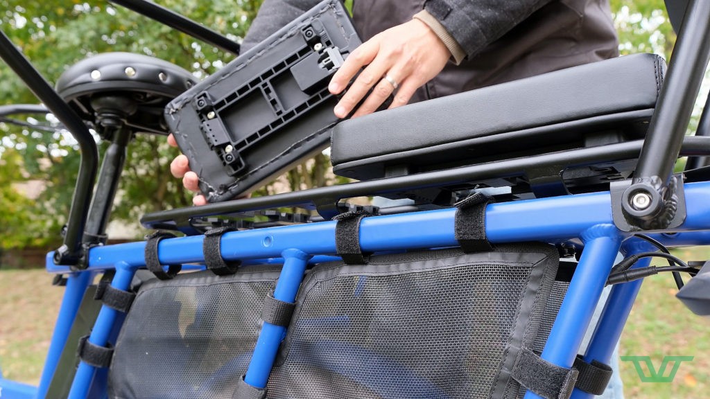 Côté passagers, enfin, personne ne s’est plaint de la qualité des coussins qui semblent pouvoir assurer de longs trajets sans occasionner de douleurs au popotin. Comme sur L’Incroyable, le porte-bagages est à la norme Mik HD et permet de changer de configuration aisément, pour alterner entre siège enfant et coussin par exemple.