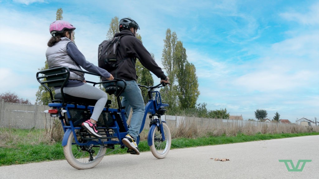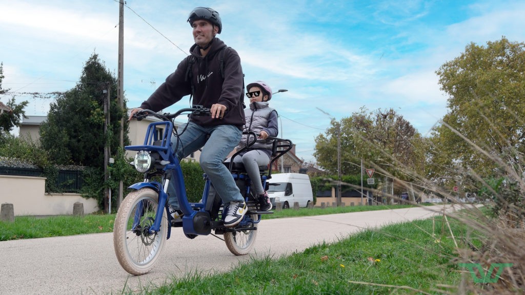 S’il y a peu de dénivelé, cela suffit à propulser le vélo – même bien chargé – entre 20 et 25 km/h avec un agrément global qui reste agréable. Il n’y a que lorsque les pentes gagnent fortement en pourcentage que l’on sent réellement les limites de ce moteur. Cela ne l’empêche pas de grimper de longues portions bien pentues même avec deux enfants à l’arrière, il faut simplement savoir être un peu plus patient et accepter des ascensions autour des 15 km/h dans ce cas de figure.