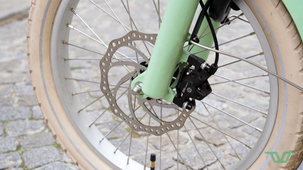 Nous remarquons le passage de freins hydrauliques Tektro sur L’Incroyable à des freins hydrauliques Star Union sur L’Original, mais aucun souci rencontré lors de notre test : ça freine avec mordant et assez fort, on peut facilement arrêter le vélo en moins de 3 mètres lancé à 25 km/h même chargé. Rien à signaler non plus sur de longues descentes. Nous avons été globalement surpris – dans le bon sens du terme – par ces freins.