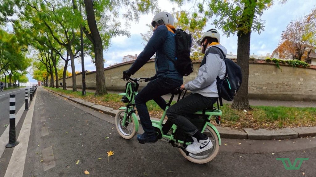 Mais alors, Court et Long, quelles différences ? La première, c’est évidemment la longueur du vélo dont dépendent son encombrement et son poids. Le Court mesure 175 cm et pèse 34 kg, contre 196 cm et 36 kg pour le Long. Ils sont sont propulsés par un moteur arrière développant 50 Nm de couple, mais le Court se contente d’un capteur de pédalage quand le Long bénéficie d’un capteur de couple pour offrir un pédalage plus naturel. Enfin, les prix diffèrent, évidemment. L’Original, Le Court est vendu à partir de 2300 €, tandis que Le Long est proposé à partir de 2800 €.