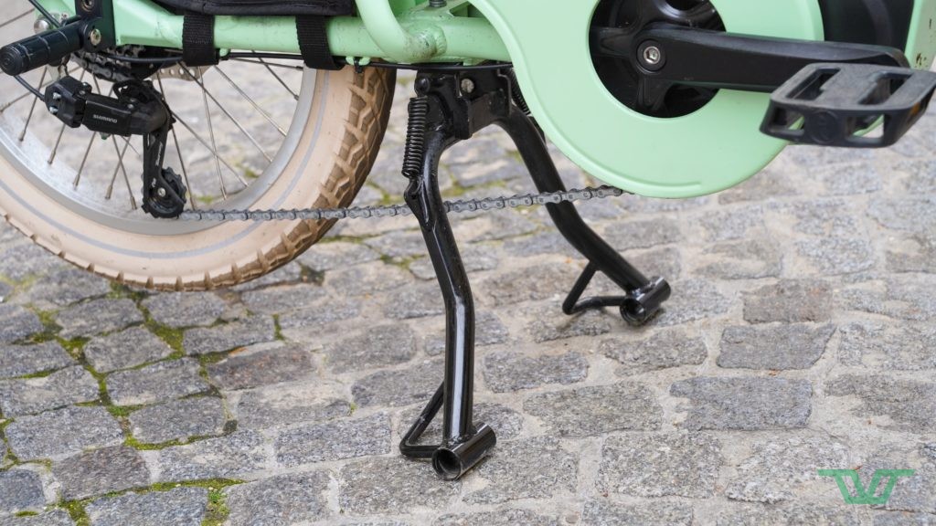 On poursuit sur la béquille double très solide, elle aussi dérivée de l’univers scooter. Elle est aussi simple qu’efficace et facile à mettre en place. C’est une belle satisfaction et elle mettra en confiance les passagers qui viendront s’installer à l’arrière.