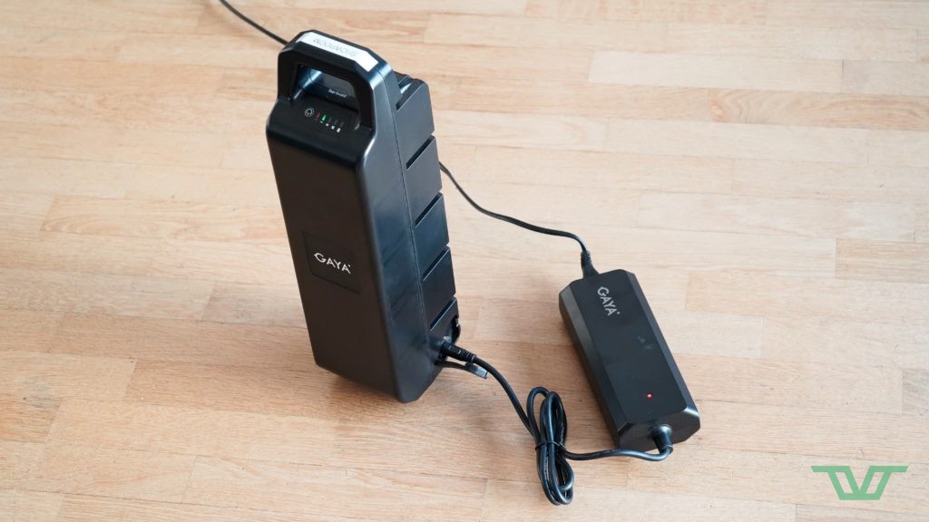 La batterie de base offre une capacité de 460 Wh pour une autonomie estimée allant de 35 à 60 km. Pour notre test, que ce soit sur Le Court ou Le Long, nous avons pu bénéficier d’une batterie de plus grande capacité (700 Wh), proposée en option au prix de 200 €. La fourchette d’autonomie estimée par Gaya grimpe à 45-75 km.