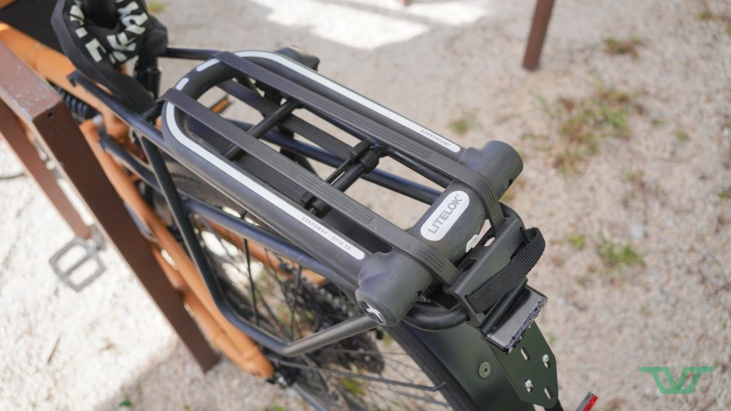 L’antivol est recouvert d’un matériau tendre qui protège le cadre d’éventuelles rayures. Il faudra simplement faire attention avec les extrémités de l’anse, qui elles ne sont pas protégées. Le X1 Plus profite en outre de bandes réfléchissantes qui rendent le cycliste encore plus visible, ce qui est toujours bon à prendre.