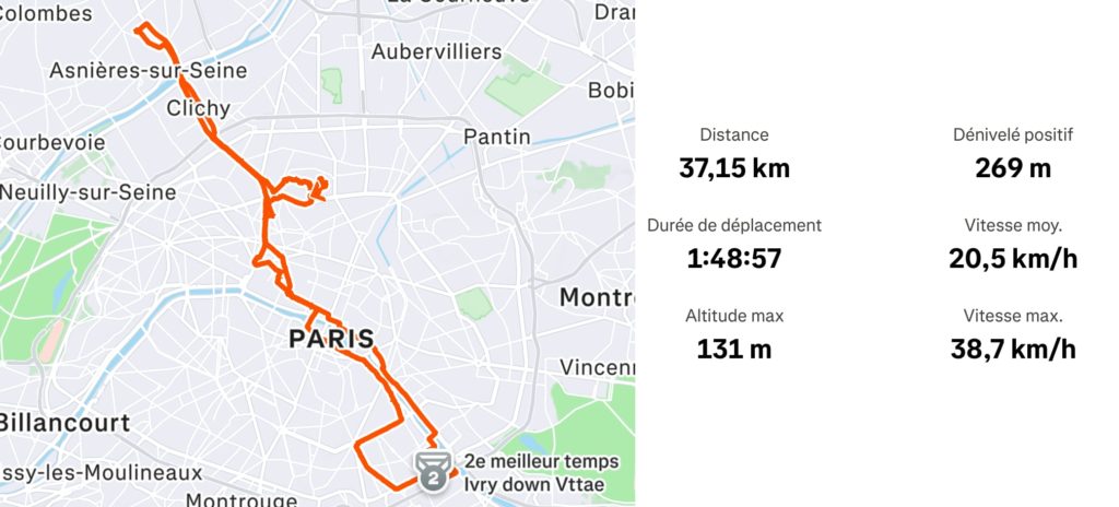 L’application permet d’obtenir quelques informations supplémentaires. On peut y voir le pourcentage de batterie restant, la consommation moyenne en Wh/km cette fois-ci, la puissance moteur, la vitesse moyenne, la vitesse instantanée et le dénivelé positif, mais elle reste clairement anecdotique.