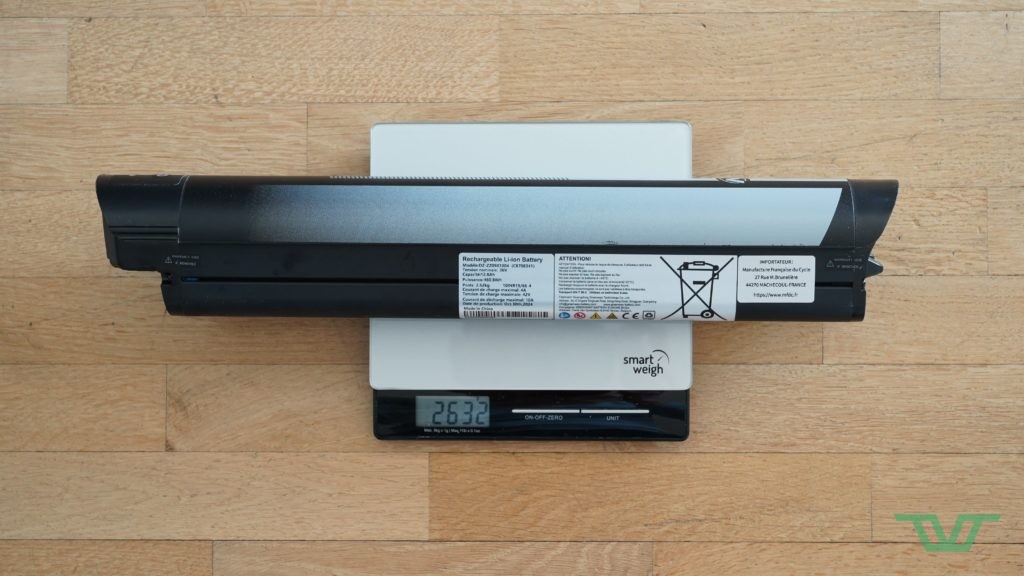 La batterie ne dispose pas de poignée, mais elle est relativement légère. Nous l’avons pesée à 2,63 kg. Elle mesure 43 cm de long pour 8 cm de haut et 4 cm de large.