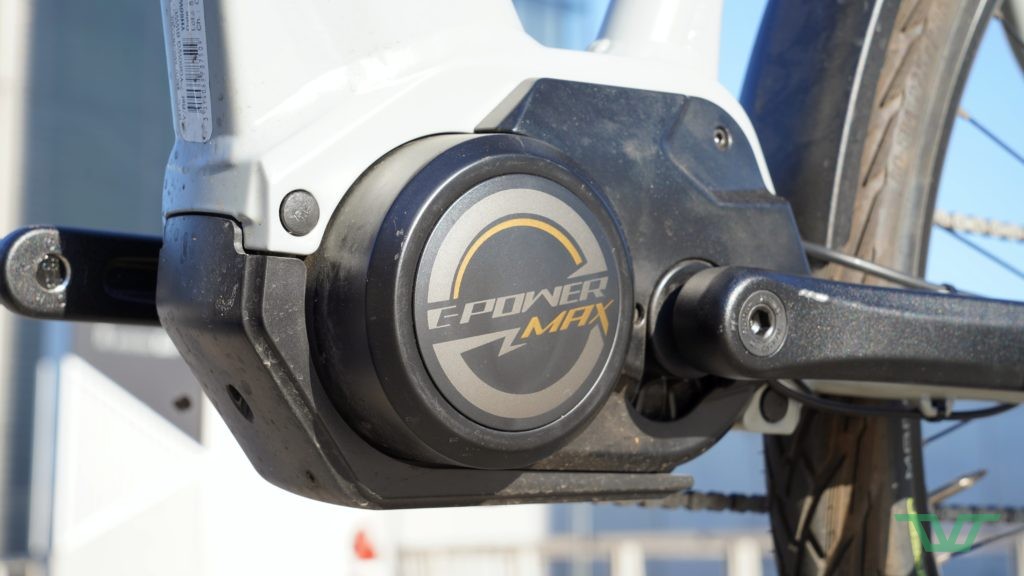 Le Nakamura Crossover GT embarque un moteur pédalier E-Power Max développant jusqu’à 100 Nm de couple, alimenté par une batterie amovible intégrée au tube diagonal de 460 Wh. L’originalité de ce vélo est l’intégration d’un moyeu à trois vitesses automatiques. Le changement de braquet se fait automatiquement en fonction de la vitesse du vélo. Cela permet de démarrer sans trop forcer sur les pédales et de maintenir une allure aux alentours des 25 km/h sans avoir à mouliner trop vite, mais comme nous allons le voir, cela ne se fait pas sans quelques concessions.