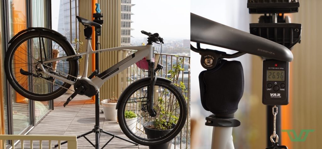 Nous avons pesé le Nakamura CrossOver GT à 26,96 kg. Le vélo est lourd et ne pourra pas être soulevé facilement notamment pour monter des escaliers. Pour autant, le poids reste bien réparti entre le moyeu à vitesse, le moteur, la batterie et la fourche suspendue.