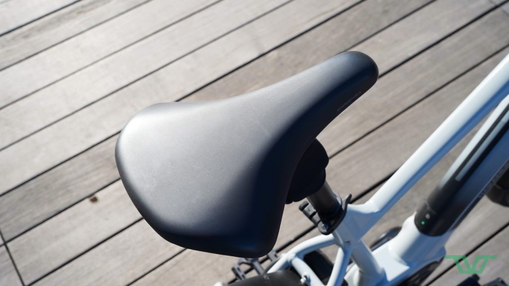 En parlant de selle, le Crossover GT est doté d’un modèle Selle Royale Essenza avec un profil hybride, ni trop large, ni trop fin, adapté au programme urbain sportif du vélo. Imperméable en surface, cette selle est rembourrée avec du gel pour améliorer le confort. La selle dispose d’un réglage rapide. C’est pratique pour changer rapidement la hauteur de selle, mais c’est aussi très pratique pour les voleurs. Ce type de serrage rapide n’est pas vraiment un avantage pour un vélo urbain et si vous comptez utiliser votre vélo tous les jours, il faudra opter pour une solution permettant de sécuriser la tige de selle et la roue avant (cf. notre test du Hexlox).