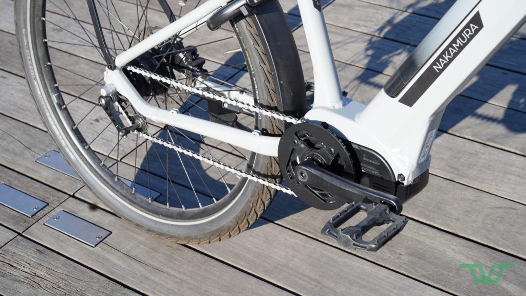 Le Nakamura Crossover GT est propulsé par un moteur Naka E-Power Max, qui n’est autre qu’un moteur Ananda M100 BBTR dont le logiciel est modifié par Nakamura. Ce moteur développe 100 Nm de couple pour une puissance en crête d’environ 650 W.