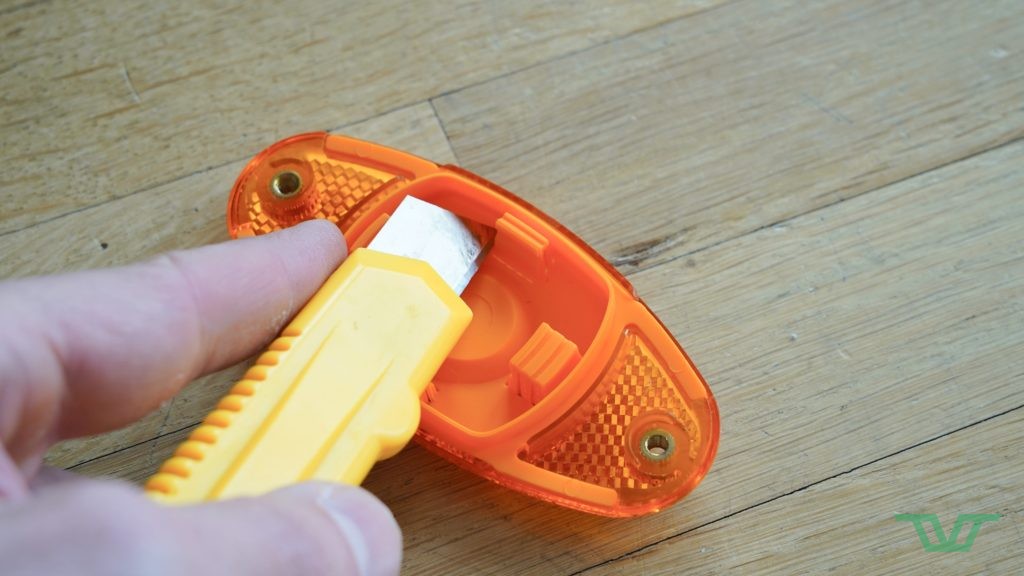 Premièrement, il faut ouvrir le catadioptre et installer la balise Bluetooth à l’intérieur à l’aide de la clé fournie. Les AirFlec sont fermés avec des vis Torx sécurisées disposant d’une petite tétine au centre empêchant l’utilisation d’une clé Torx classique. Pour autant, on trouve les clés Torx « sécurisée » assez facilement en ligne.