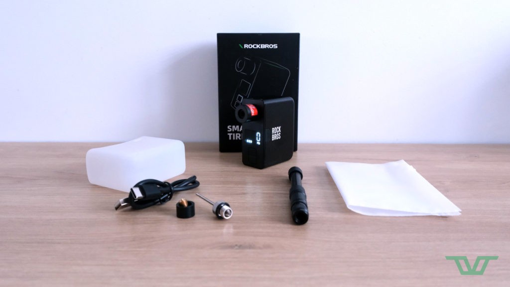 En plus de ce dernier, la mini pompe électrique Rockbros est livrée avec un étui de protection en silicone, un embout de gonflage pour ballons et un câble USB-C pour la recharge. Le chargeur n’est pas fourni mais celui de son ordinateur ou de son smartphone fera pleinement l’affaire.