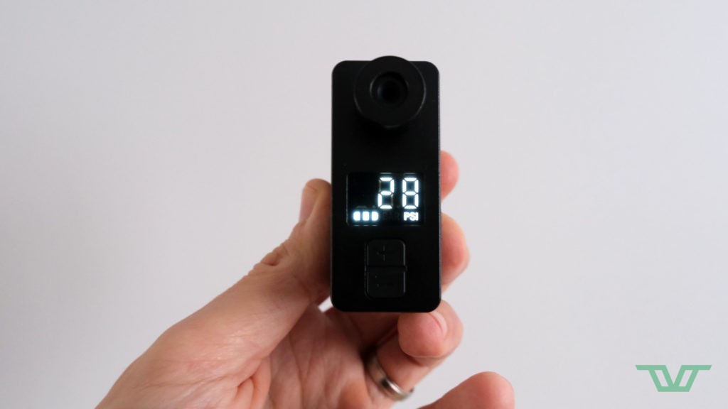 On trouve sur cette mini pompe un petit écran qui permet de prérégler la pression cible lors d’un gonflage au PSI près. Comme toutes ses congénères, cette mini pompe a un fonctionnement très simple et est compatible avec les valves Presta ou Schrader via une simple modification de l’embout, ce qui se fait sans outil.