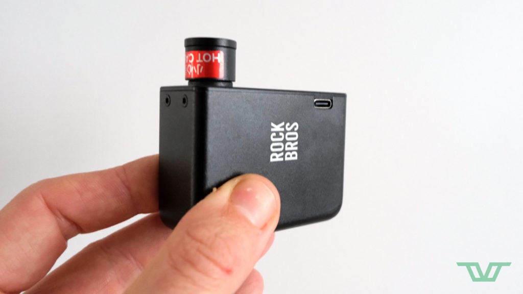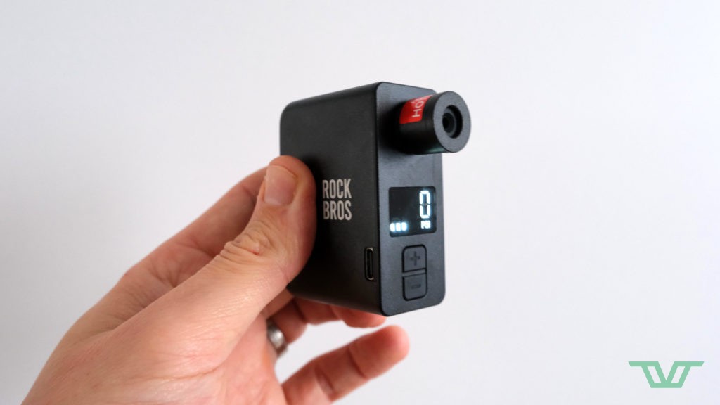 Forcément, Rockbros propose aussi des pompes de gonflage vélo et il n’est pas étonnant de voir la marque proposer sa mini pompe électrique de poche pour occuper le terrain sur ce segment du marché en plein essor. Une mini pompe qui, physiquement, est en tous points identique à l’Airmach Pro de Muc-Off, au millimètre et au gramme près (64,5 x 63 x 28 mm pour 124 g). Sortent-elles de la même usine ? Possible. Sans surprise, les caractéristiques techniques de cette Rockbros Smart Bicycle Tire Inflator sont donc également identiques.