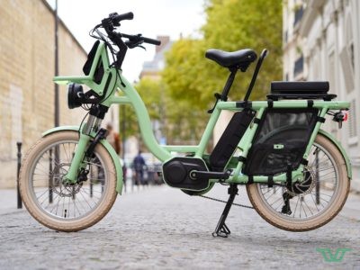 Le Loady est le seul vélo cargo longtail au catalogue du fabricant allemand Velo de Ville. C’est un vélo cargo longtail électrique compact avec ses roues de 20 pouces et une longueur de 190 cm. Il peut porter 200 kg, soit 166 kg de charge utile lorsque l’on retire les 34 kg du vélo, alors que le porte-bagages arrière supporte une charge de 75 kg. Il peut donc transporter deux grands enfants à l’arrière ou même un adulte.