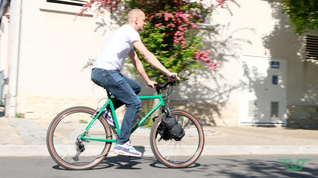 Ambiance plus gravel avec le DBL sur lequel on reconnait aisément la géométrie du Rockrider 520 de Decathlon. Il faut dire que c’est un cadre qui a accompagné pas mal de nos balades à vélo, alors que l’on rentrait dans l’adolescence.