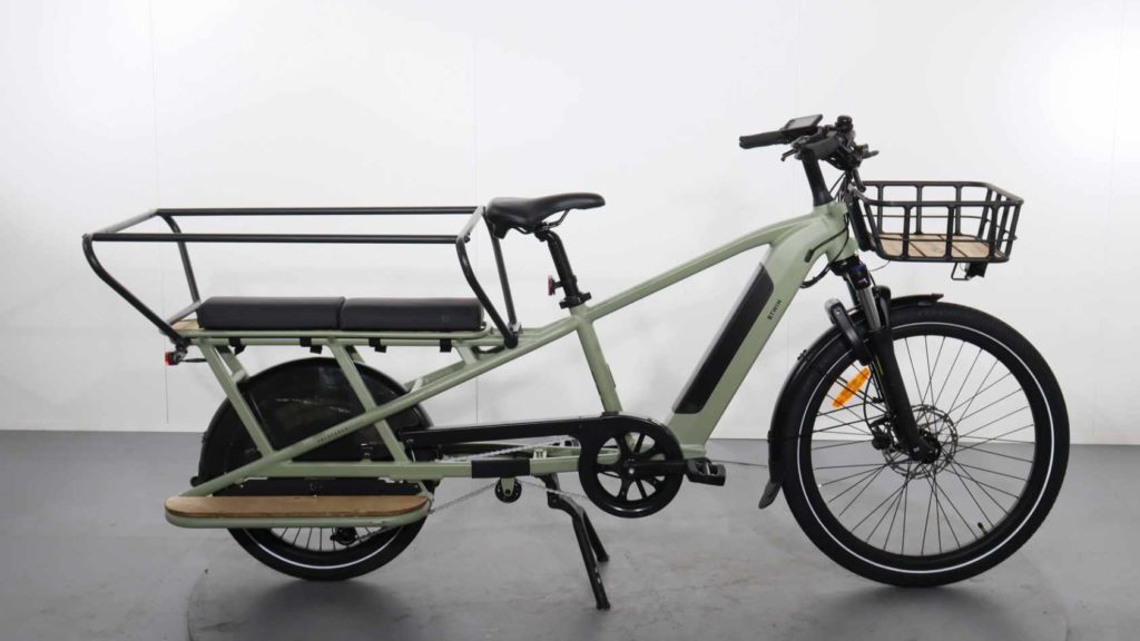 C’est un vélo que nous connaissons très bien et qui, s’il n’est pas parfait, a su démocratiser l’usage du vélo cargo en France puisqu’il s’agit d’un best-seller. Il peut pour rappel porter 1 adulte ou 2 enfants à l’arrière (jusqu’à 80 kg) pour un total de 170 kg de charge utile. En taille unique, il convient aux cyclistes mesurant de 1m58 à 1m90. Long de 2,20 m et pesant 38 kg, c’est un cargo électrique très capable.