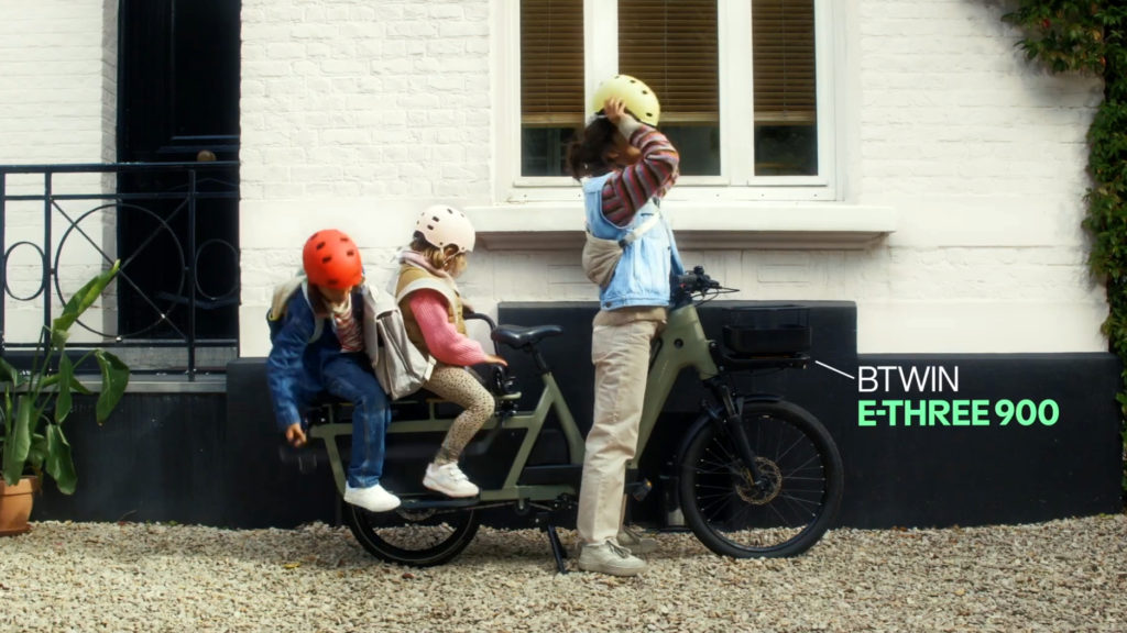 Mais ce n’est pas tout, cet E-Three 900 n’est pas seulement apparu dans les listings du Cargo Bike Festival. En effet, en faisant quelques recherches, nous avons également mis la main sur une vidéo indiquée comme « non répertoriée » sur YouTube, publiée sur ce compte d’un responsable de la production d’image chez Decathlon. Celle-ci présente certaines des fonctions clés de ce futur nouveau cargo Btwin.