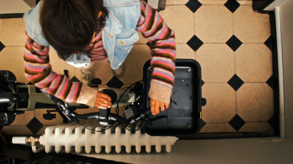 On y voit par exemple l’intérêt des barres de maintien à ouverture « papillon » à l’arrière, la potence pivotante à 90° pour faciliter le parking du vélo, la compatibilité avec le système d’accessoires B-Clip. Sont également cités la géolocalisation du vélo et, bien sûr, la présence du moteur Owuru développé, on le rappelle, par la start-up belge E2Drive.