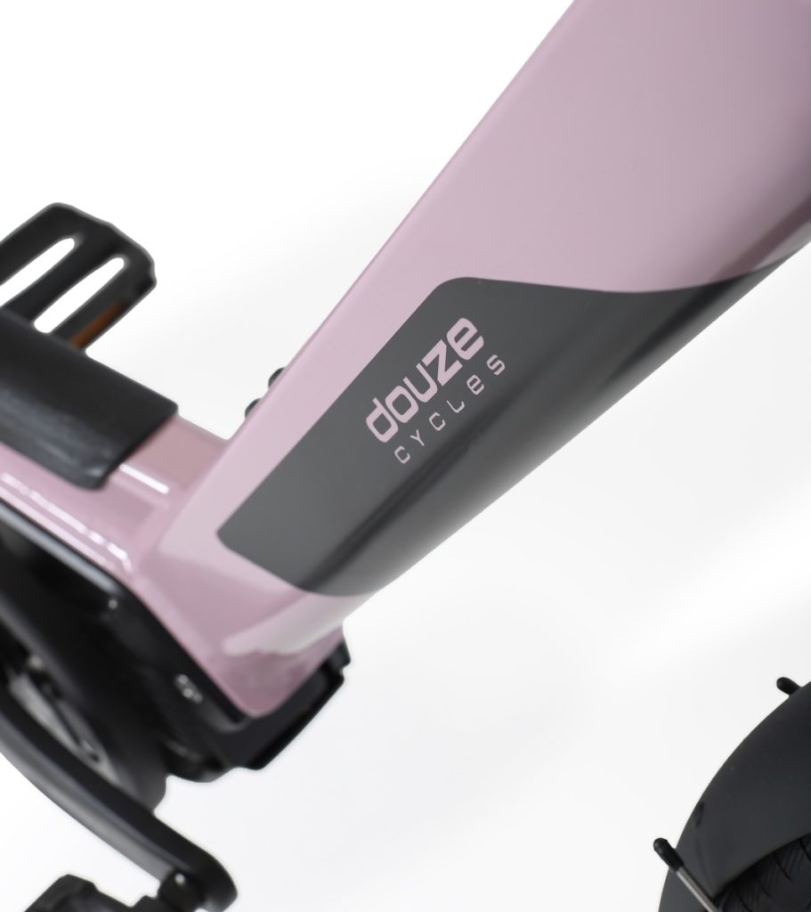 Conçu et assemblé à Longvic, près de Dijon, le Douze LT24 repose sur un cadre en aluminium entièrement revu. Son architecture adopte désormais un cadre ouvert, facilitant nettement l’enjambement, un point important pour un vélo cargo utilisé au quotidien. Pour préserver la rigidité, un renfort relie la poutre principale à la douille de direction. Côté design, les tubes ronds laissent place à des lignes plus anguleuses tout en conservant l’identité visuelle caractéristique de la marque.