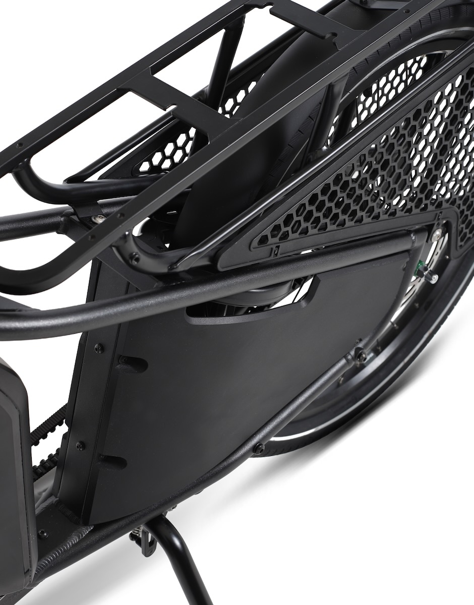 Autour du vélo, Douze Cycles a aussi retravaillé son écosystème d’accessoires : nouveaux repose-pieds, protections latérales, coussins passagers ou encore caisse de transport pour les professionnels. La barre de maintien arrière a été améliorée pour faciliter l’embarquement des enfants. Le vélo reçoit aussi un antivol de cadre de série, un pré-équipement pour traceur GPS et un cockpit compatible avec plusieurs supports smartphone. Une canopy pour protéger les passagers est également en préparation.