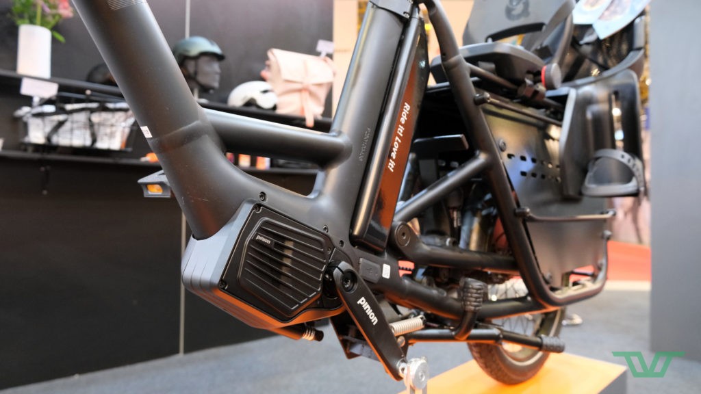 Quoi qu’il en soit, cet i:SY P12 Longtail s’apprête à être commercialisé au tarif de 6999 € en coloris noir, avec un moteur Pinion MGU à 12 vitesses intégrées (85 Nm) et une batterie de 800 € de capacité. Un vélo qui assume un positionnement premium mais il faut savoir que les systèmes Pinion sont onéreux et que tous les vélos proposés en MGU excèdent les 6000 €. Pour un vélo cargo longtail équipé de ce kit électrique, le tarif paraît donc presque raisonnable.