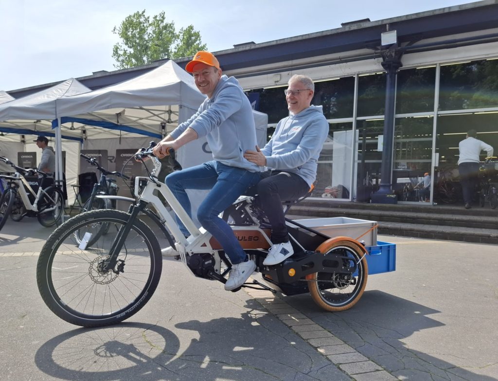 Dans un environnement plus urbain, le triporteur Moduléo peut être équipé pour 2 adultes, tout en conservant sa plateforme de chargement entre les roues arrière. Le vélo cargo embarque une batterie de 1240 Wh, pour une autonomie promise à 100 km tout de même. La marque assure qu’il faut 5 secondes à peine pour changer de module grâce à sa conception simple.